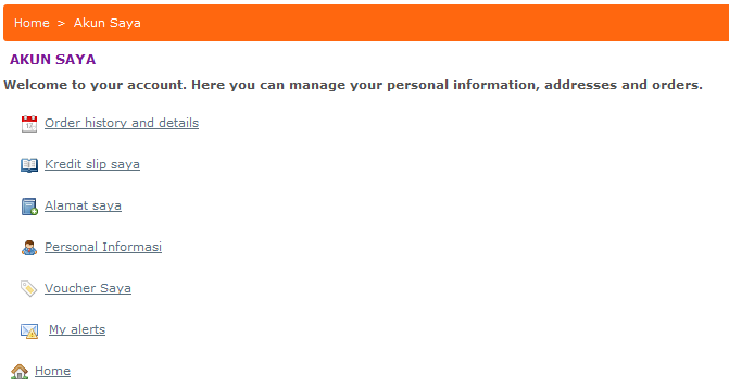 Di sini Anda bisa melihat histori orderan, ataupun mengedit Alamat dan juga Personal Informasi.