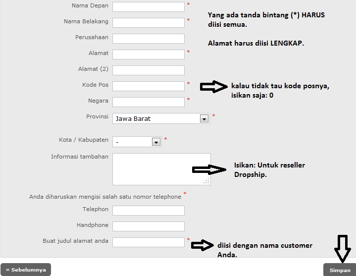 Tuliskan juga: Untuk RESELLER DROPSHIP >> Di dalam kotak Informasi Tambahan.
