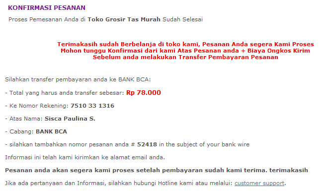 - Data orderan juga akan masuk secara otomatis ke alamat email Anda.