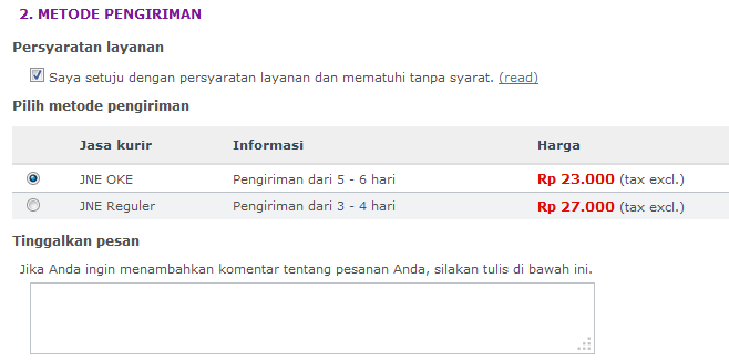 - Kemudian pilih mau pakai JNE Oke atau JNE Reguler.