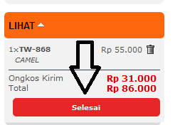 5. Kalau sudah selesai melakukan order, klik: Selesai, di keranjang belanja (letaknya ada di bagian kiri, tengah).